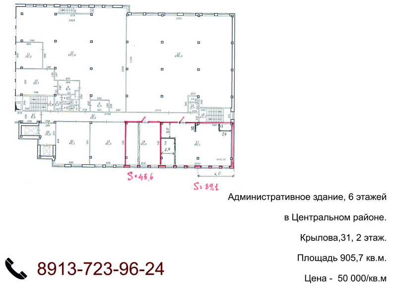 Административное здание, 6 этажей в Центральном районе. Крылова,31, 2 этаж. Площадь 905,7 кв.м. Продажа по цене - 50 000/кв.м