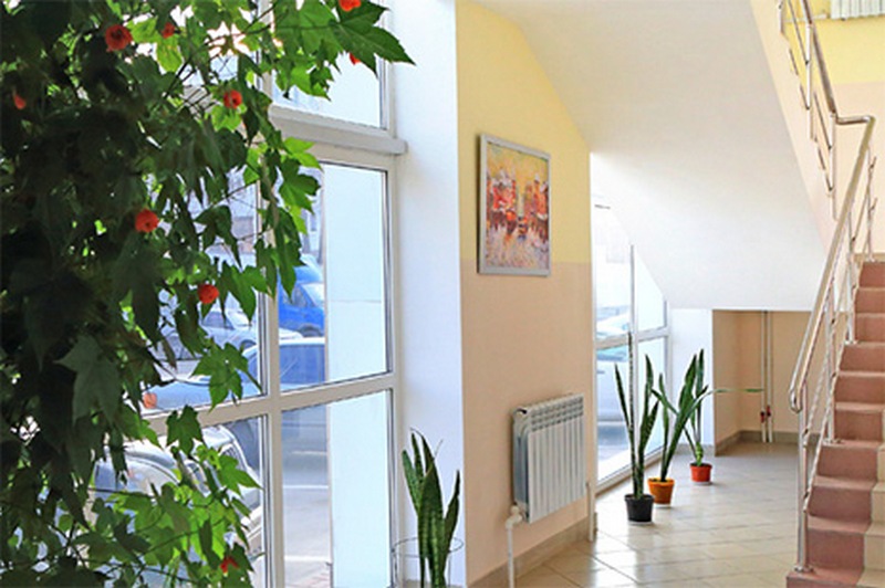 Здание расположено в центре крупного района города, в 70 метрах от автомагистрали с великолепной транспортной развязкой. И в то же время, трехэтажный особняк разместился в центре эко-парка - зеленой зоне, которая гарантирует чистый воздух и защищает от шума автодороги.