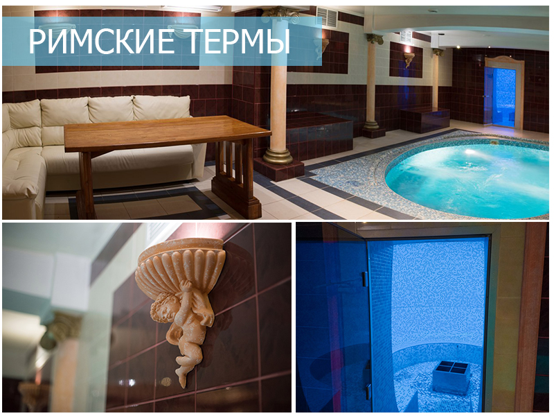 Русские и римские бани, турецкий хамам, массаж, бассейн и превосходный гостиничный сервис.