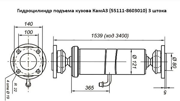 Гидроцилиндры телескопические для подъёма платформы (кузова) КАМАЗ: