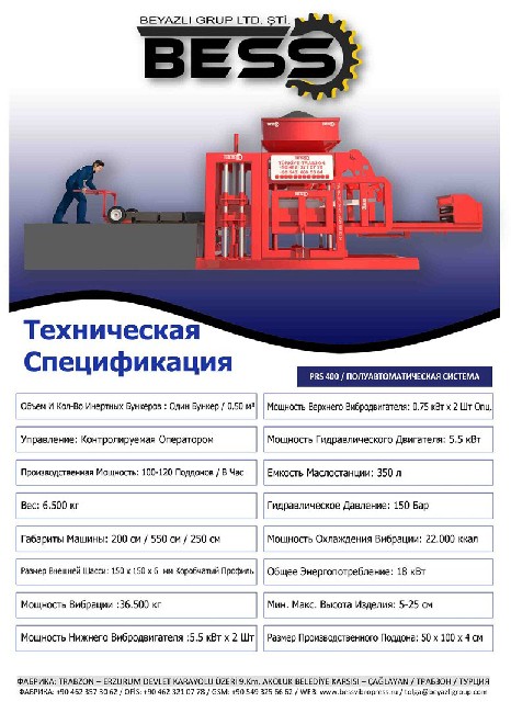 ТЕХНИЧЕСКАЯ ИНФОРМАЦИЯ ПОЛУАВТОМАТИЧЕСКАЯ МАШИНА PRS 400 ЗАВОД ДЛЯ ПРОИЗВОДСТВА СТЕНОВОГО КАМНЯ