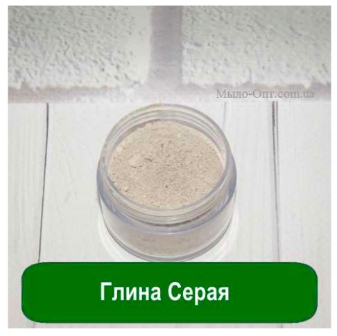 Серая глина встречается не так часто, как белая глина и в Украине добывается только в заповедных зонах юго-запада страны. Серая, как и другие глины, является косметическим средством для самостоятельного применения или использования в косметических составах. Антиоксидантные, подсушивающие, подтягивающие и матирующие свойства глины могут использоваться почти во всех косметических средствах. Серая глина характеризуется достаточно высоким содержанием минералов и солей, адсорбирующих компонентов, высокой концентрацией оксида кремния. Эти характеристики обеспечивают ее целительные свойства, и очищающий эффект. Серая глина признается самым чистым глиняным продуктом без песочных и других примесей. Даже в чистом виде ее можно использовать как мыло, а обогащенная натуральными маслами она становится полезным скрабом или маской. Этот вид глины нашел свое применение во многих санаториях и лечебницах, где используется в ваннах, аппликациях, для приема внутрь, обертываний.