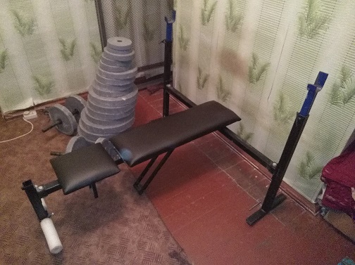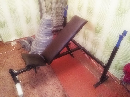 - Лавка для жима лежа с регулируемой спинкой и стойками для разных углов, очень удобная! + лавка Скотта.