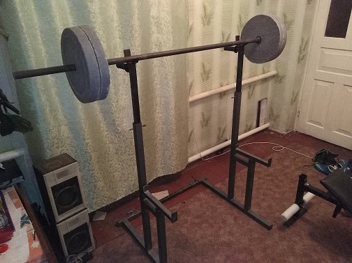 - Стойки для приседа с возможностью делать из них брусья (на фото видно) + для разных видов тяг штанги.