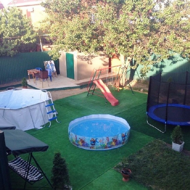 На территории нашего частного дома, мы оборудовали места для отдыха беседкой, качелями и комплектами садовой мебели. Ну, а всех желающих попариться мы приглашаем в нашу сауну. Маленьких постояльцев нашего дома ждет оборудованная детская площадка с множеством игр и развлечений. Почти на всей территории работает безлимитный Wi-Fi интернет. Любителям шашлычка - мангал и шампуры. А также есть общая кухня со всем необходимым для самостоятельного приготовления пищи.