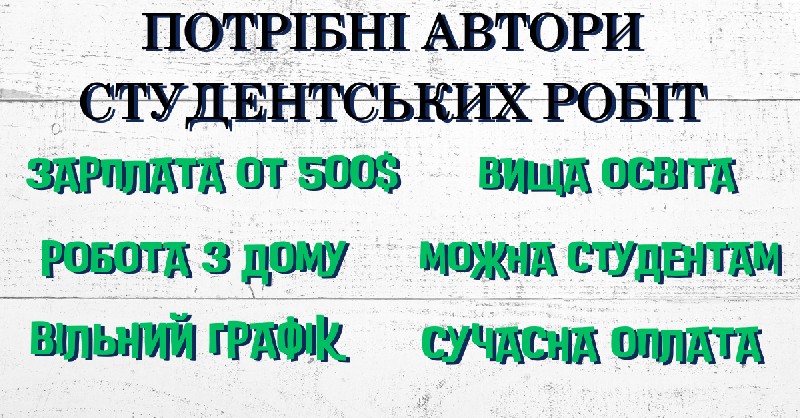 Викладач, аспірант, працівник зі сфери освіти, випускник, студент старших курсів (3+), що гарно навчався/навчається та має досвід у сфері виконання курсових, рефератів та дипломів або інших видів студентських робіт. Ви також підійдете якщо гарно виконували домашні завдання та залікові роботи під час навчання у ВНЗ для себе Зарплата від $500 робота з дому зацікавила вакансія - переходь за посиланням