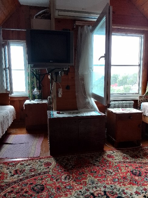 В доме на 1-ом этаже находится кухня-столовая, туалет и 2 душа, на 2-ом – две комнаты с выходом на террасу и туалет, на 3-ем - жилая мансарда. В комнатах имеются сплит-системы, ТВ, и т. д. Горячая вода круглосуточно. Со всех окон шикарный вид на море.