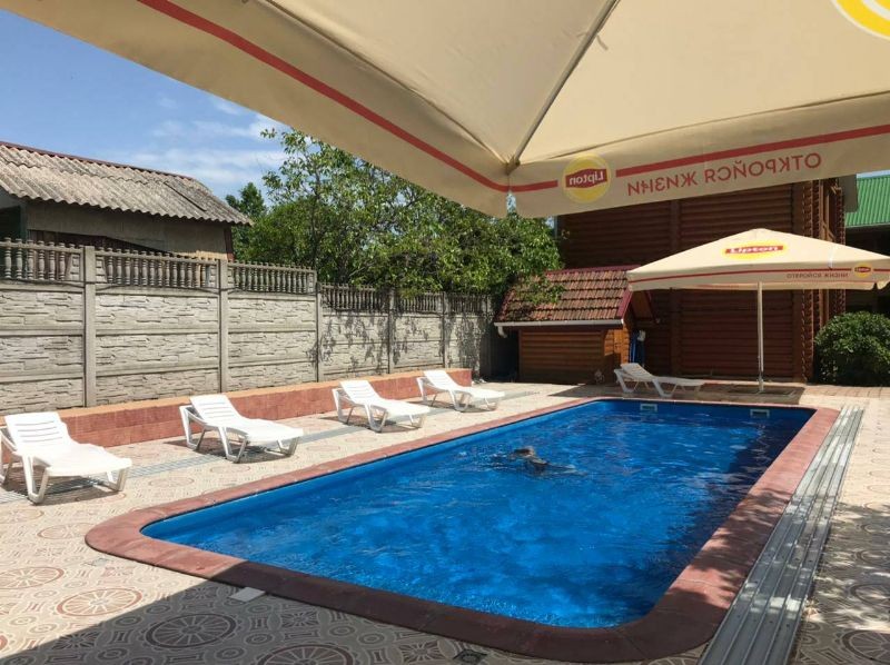 Во дворе бассейн, 2 мангала, летняя оборудованная кухня с посудой и холодильниками для самостоятельного приготовления еды, большая зеленая поляна для отдыха.