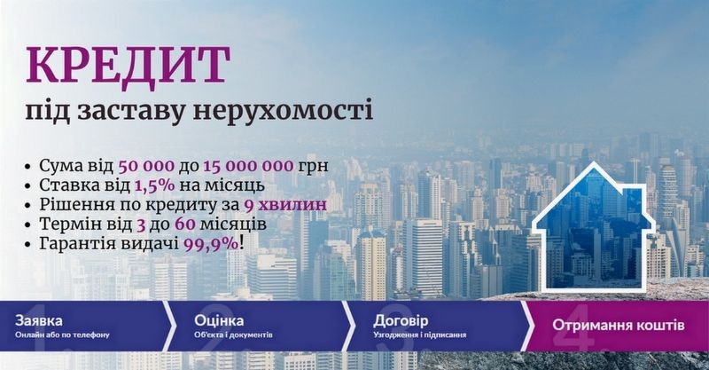 Кредитуємо під об' єкти будь-якої нерухомості (квартира, будинок, комерційне приміщення або земельна ділянка) у Києві, Київській області, Львові, Чернівцях, Івано-Франківську, Тернополі, Ужгороді та багатьох інших містах України.