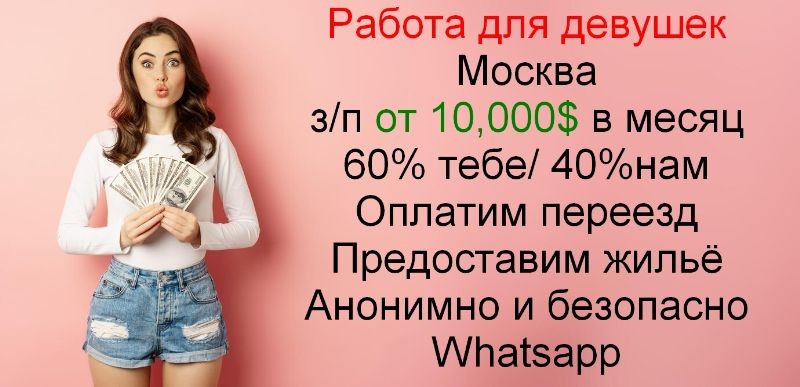 Высокооплачиваемая работа для девушек в Москве. От 10.000 $. Лучшие условия. Работай в удобное для тебя время. 60/40 - в твою пользу. Поможем с переездом в Москву из любой точки мира. Пишите в whatsapp.