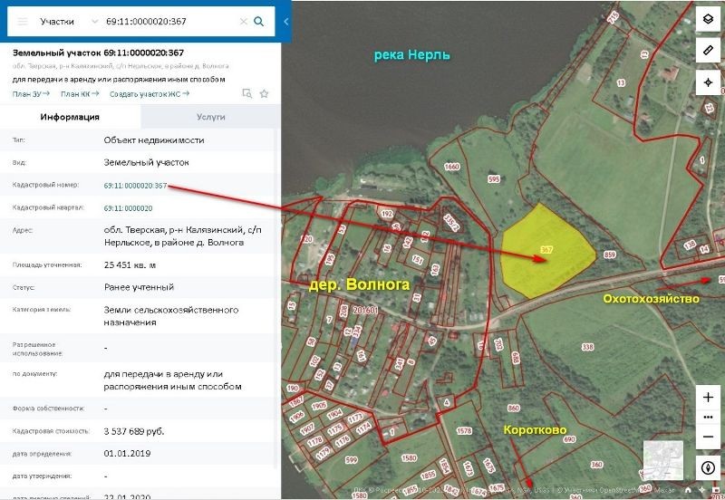 Предлагается к продаже земельный участок в районе деревни Волнога Нерльского сельского поселения Калязинского района Тверской области общей площадью 2,5451 га (254,51 сотки). К № 69:11:0000020:367. Категория земель – земли сельскохозяйственного назначения (находится в стадии перевода в земли поселений). Вид разрешенного использования – для дачного строительства. Цена: 3 950 000 рублей (разумный торг). Продается как единый массив. Очень красивые места. До реки Нерль 200 метров. Ширина реки 720 м. Рядом большая деревня. До деревни от участка 80 метров. В деревне магазин, рыболовно-туристическая база "Скнятино". Электричество проходит по границе участка. Возможность подключения есть. Река, леса, поля. Рыбалка, охота. До реки Волга (Угличское водохранилище) – 650 м. по реке Нерль. Рядом Скнятинское охотничье хозяйство (от участка 920 м. ), лодочная станция и рыбохозяйство. До гор. Калязина 42,0 км. , до МКАД 180 км. Приятное место для коттеджного поселка, базы отдыха (аренда домов) и т. д.