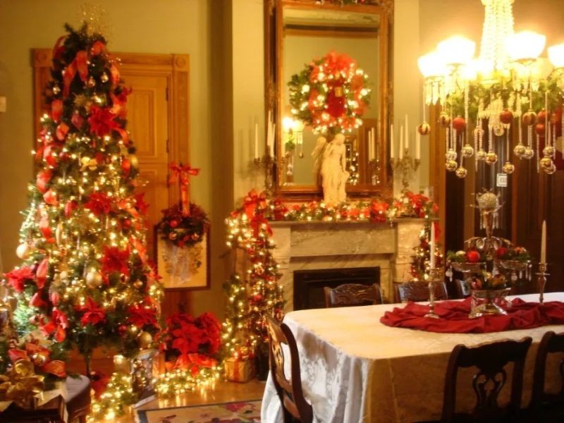 • игрушки из разных материалов (стекло, пластик, перья, фетр, атлас и т. д. ) в одной цветовой гамме