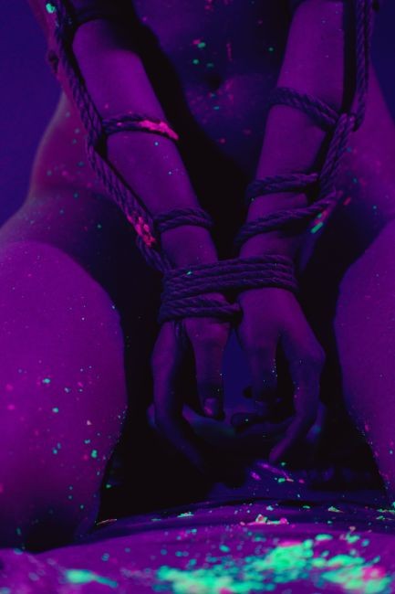 Питер, фотосессии в стиле ню с флуоресцентными свечами и обвязкой шибари.