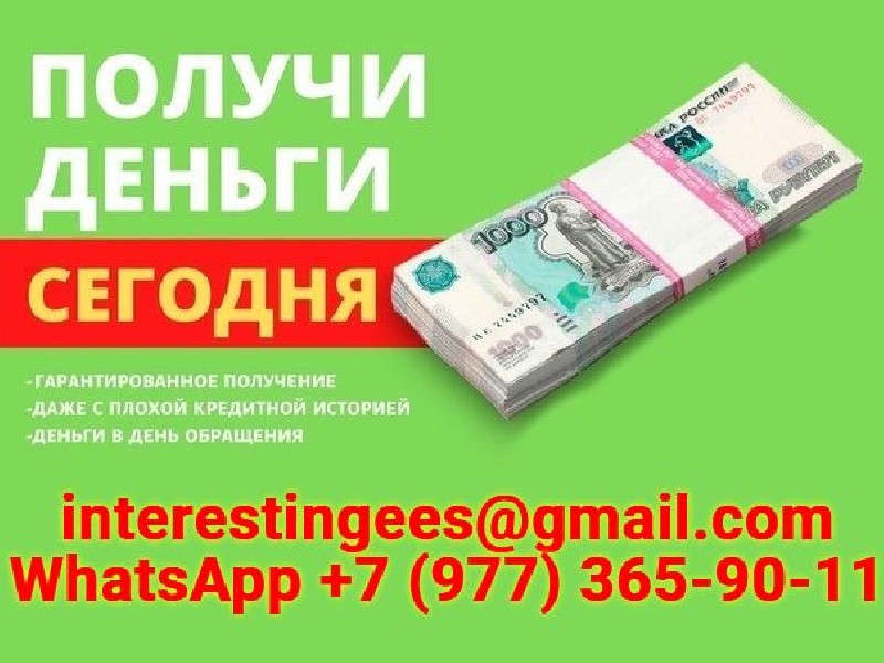 Кредит без отказов, с подписанием всех необходимых документов. Обслуживаем все регионы России. Простота оформления и приемлемые условия приятно удивят Вас. Работаем без предоплаты в любом виде. Работаем при любой кредитной истории, просрочках, долговых нагрузках, судимости, неофициальном трудоустройстве и т. д. Предоставляем гарантии, которые не могут предоставить другие. Полную информацию предоставим по запросу на эл. почту interestingees@gmail. com или WhatsApp +7 (977) 365-90-11