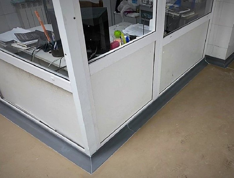 Плинтус подходит для финишной отделки всех видов промышленного пола,  включительно:  из модульной пвх плитки,  вулканизированной резиновой плитки,  полимерных наливных полов и т.  д.