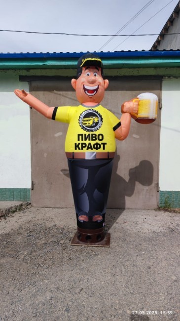 Надувной зазывала – это надувная декоративная конструкция с динамическим эффектом,  благодаря которому,  она более живая и привлекает больше внимания в сравнении с традиционной наружной рекламой.  .  .  Это может быть повар,  автослесарь,  фермер и пр.  Всегда выбирайте Надувного зазывала.