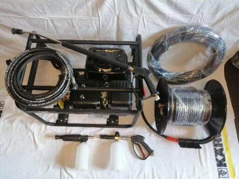 Мойка установлена в прочную заводскую раму (70×50×50 см), легко транспортируется и отличается компактностью. В комплект входит долговечный каучуковый шланг до 100 метров с двойной металлической оплеткой (400 бар, Италия), профессиональный пистолет TECOMEC и пенный комплект LS-3 от IDROBASE для бесконтактной мойки. Рабочее копье длиной 900 мм с форсункой формирует мощный поток с углом распыла 25°.