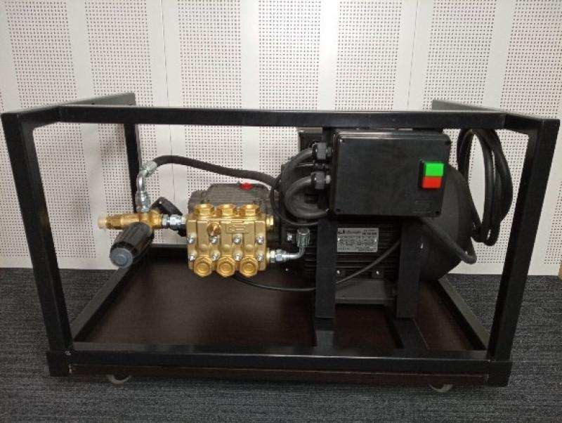 Диапазон давления от 40 до 300 бар регулируется системой by pass, что позволяет точно подбирать мощность под конкретную задачу. Встроенный электроблок с кнопкой включения, магнитным пускателем 32А и комплектной розеткой 380В обеспечивает удобство эксплуатации и надежную защиту.