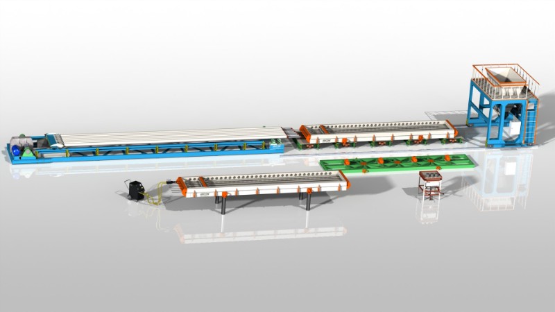 Линия используется для серийного изготовления многопустотных плит перекрытий из железобетона методом виброформования в металлоформах.