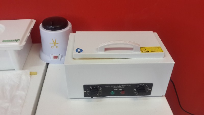 рабочее место парикмахера, 2 стола для маникюра и одно место для педикюра. Так же рабочий материал для маникюра/педикюра: